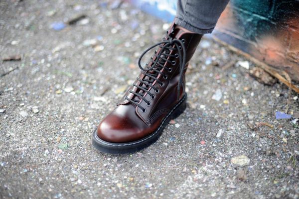 Solovair Women’s Burgundy Rub-Off 11-Eye Derby Boots
